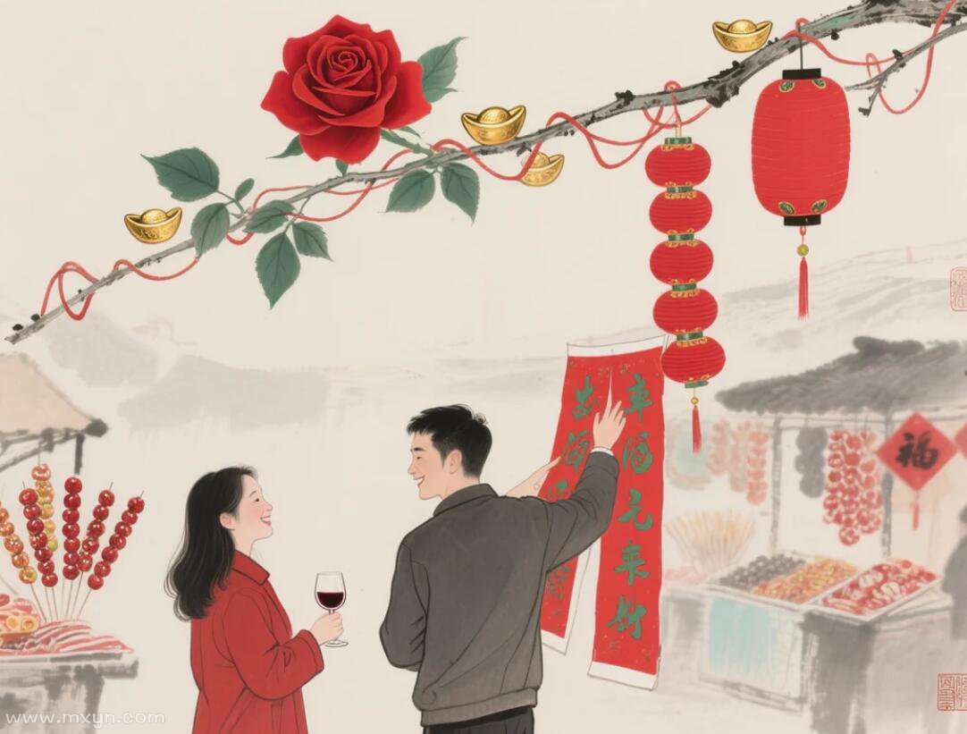 今天,不管你最后是去了烛光晚餐,还是逛了年货大集;不管你手里捧的是玫瑰,还是红对联——只要你们两个人在一起,就是最好的情人节,也是最好的年。